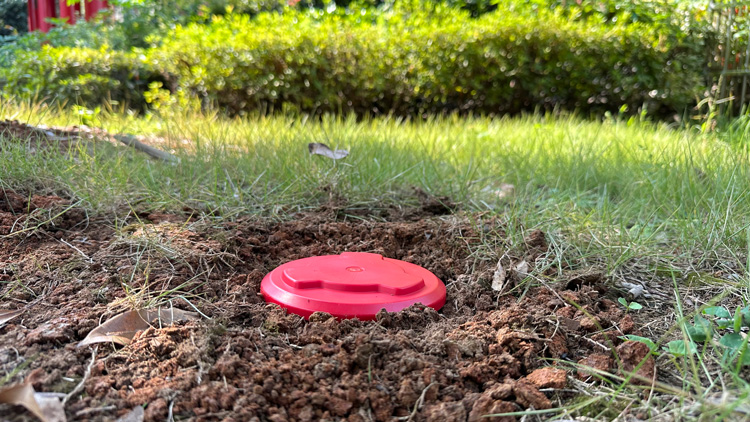 湖北当地公园内的木质结构建筑,根据要求,在建筑周围和墙角埋设JMY-VIS智能白蚁可视化监测装置,JMY-04A智能白蚁监测装置以及JMY-04C地上型智能白蚁监测装置。