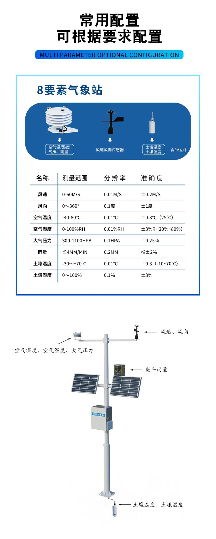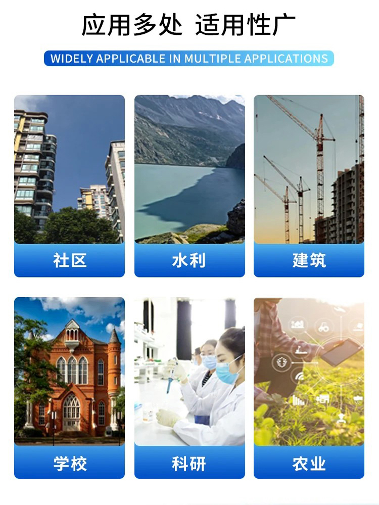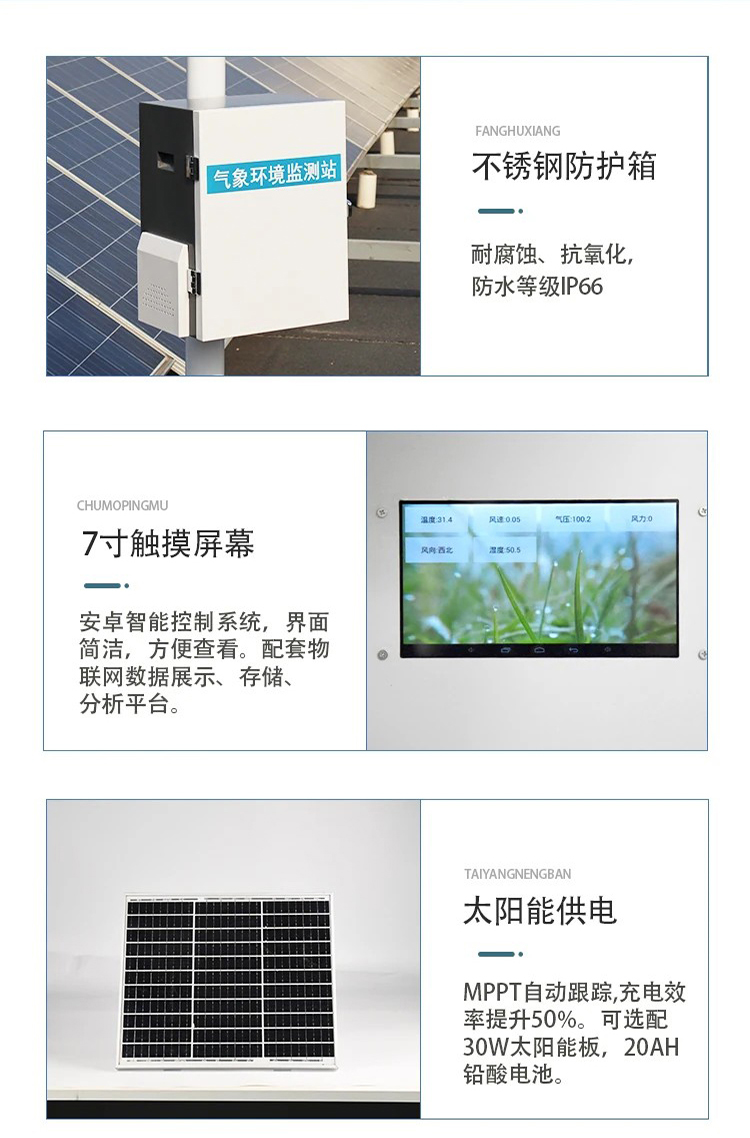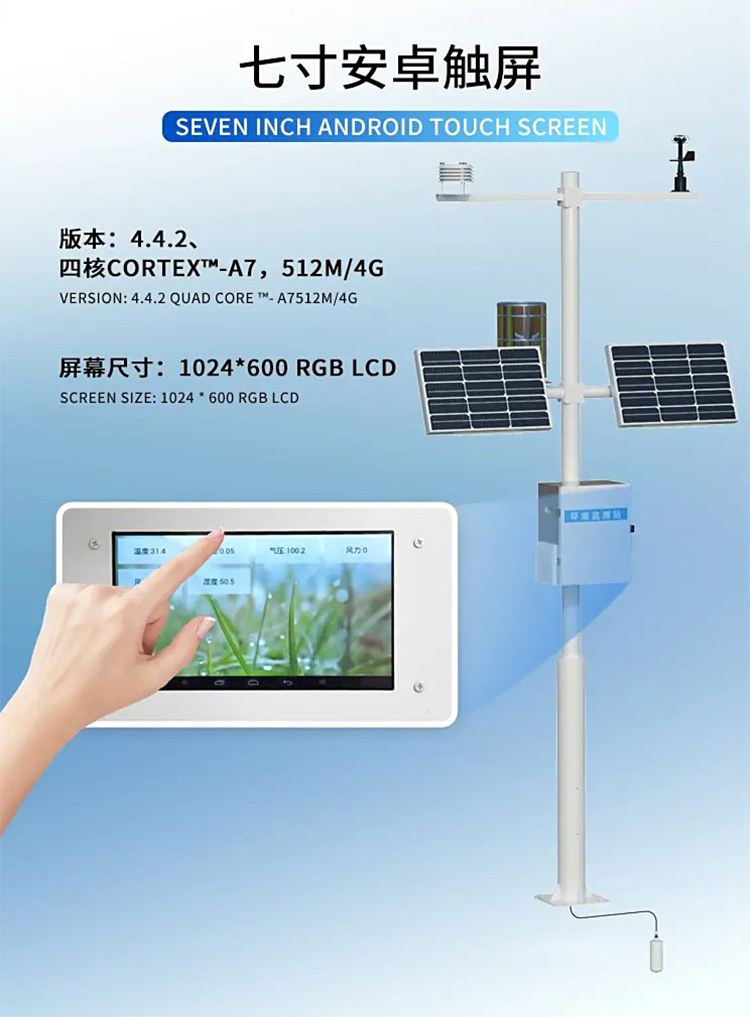 对风速、风向、雨量、空气温度、空气湿度、大气压力等气象主要要素进行全天候现场监测,分类统计分析和处理,应用于气象、农业、地质、环境等方面。