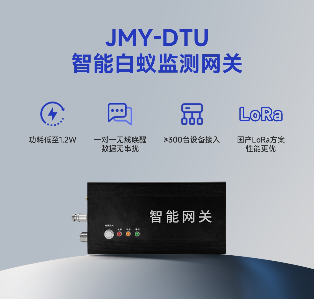 金蚂蚁科技智能白蚁监测系统由智能白蚁监测装置、智能白蚁监测网关、PC端管理软件及小程序等几部分组成。JMY-DTU是一款多协议网关,具有丰富的拓展接口,可以根据不同组网更换或者增加所需模块,以满足不同的需求。并且经过严格的防水和环境测试,应对各种极端环境。