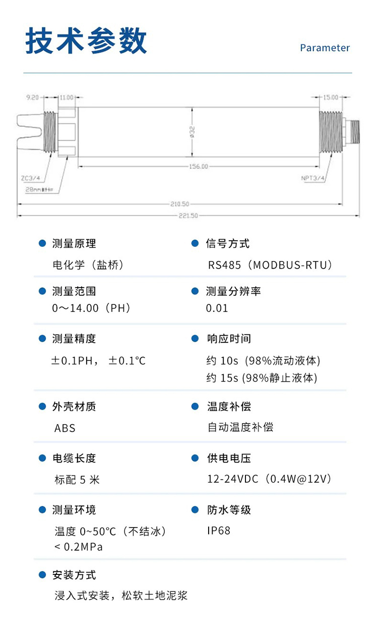 土壤ph传感器又称土壤电导率传感器,土壤ph传感器的工作原理基于电化学测量技术,可实现土壤PH在线实时监测,是一种用于测量土壤pH值的传感器。