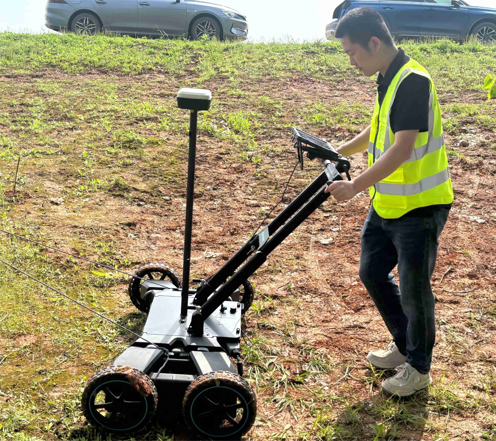 ◆ 该设备在平坦或崎岖地形上进行扫描,可实时获得准确的GNSS定位,并实时调整显示设置,以满意方式现场判定地下物体;
