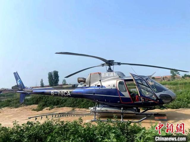图为德州庆云县开展飞防工作使用的专用直升机。