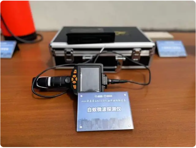 除了饵站,周敏荣还向记者介绍了另一个监测的“神器”——白蚁微波探测仪,可以利用微波探测活动物体的原理来发现白蚁,用于室内地下、木材内白蚁生命迹象。若设备探测到白蚁,LED指示灯就会亮起,白蚁数量越多,指示灯闪烁越频繁且强度等级越高。