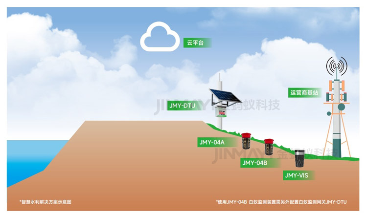 JMY-VIS智能白蚁可视化监测装置是集可视化与远程消杀于一体的白蚁监测防治系统。通过白蚁引诱技术、可视化采集、4G高速传输、AI智能识别等前沿科技手段,实现对白蚁的实时监测与精准消杀,利用大数据模型定位挖掘白蚁巢穴,对水库大坝等起到防护和消除隐患的作用。